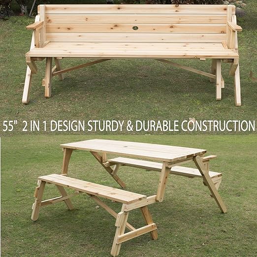 Nice Price 2 In 1 Interchangeable Picnic Table To Garden Bench Wood