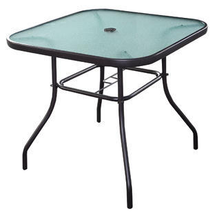 Goplus 32 1 2 Patio Square Bar Dining Table Glass Deck Outdoor
