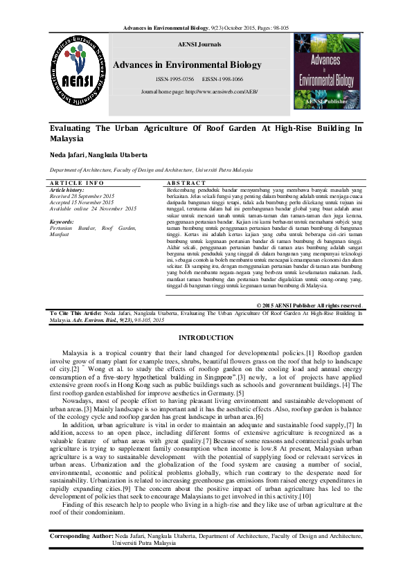Pdf Evaluating The Urban Agriculture Of Roof Garden At High Rise