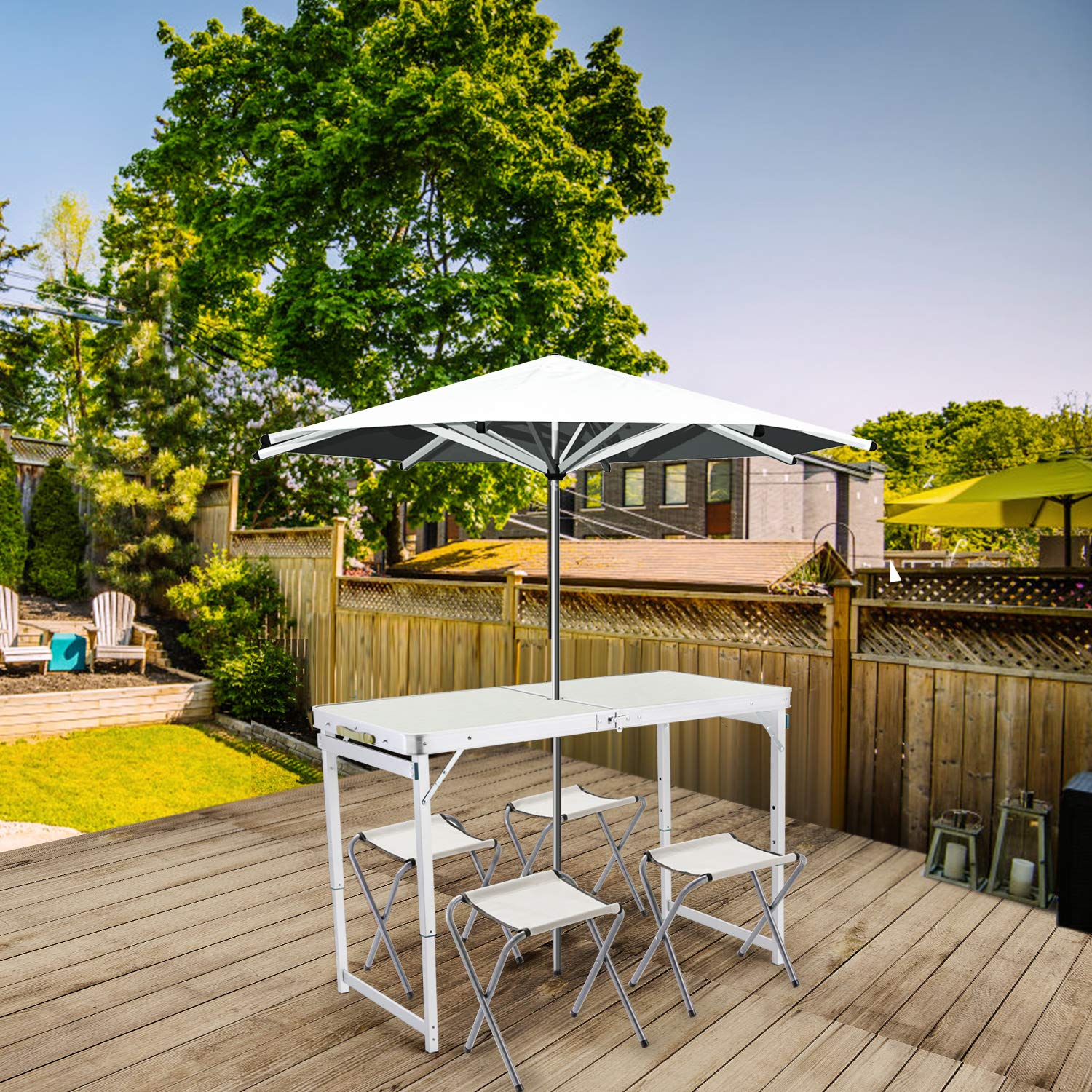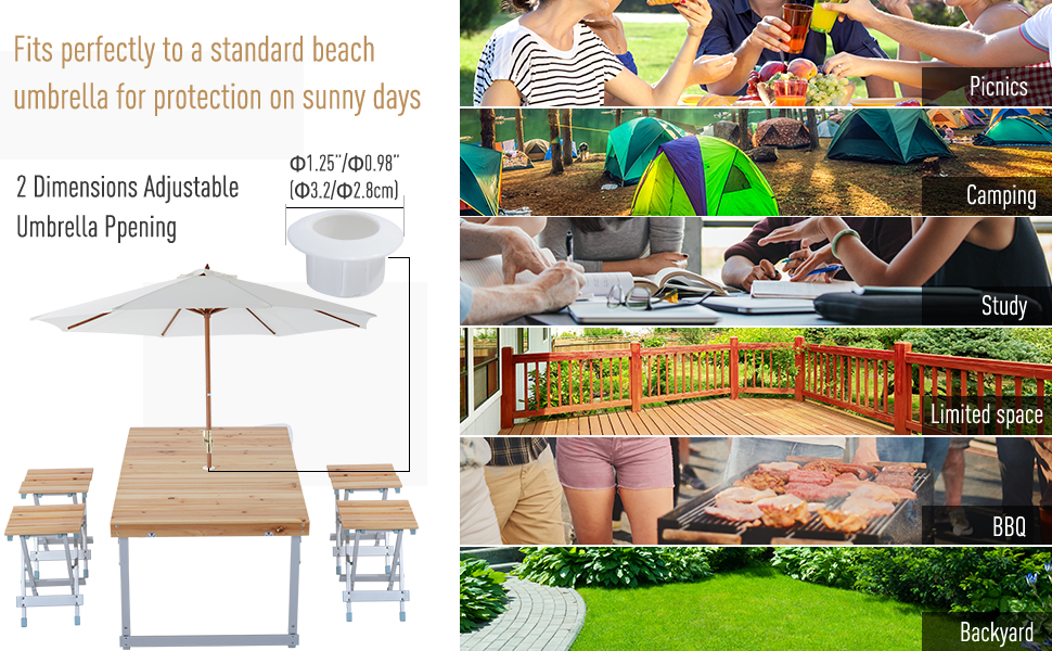 Acm Aluminium Folding Portable Picnic Table With Chair Umbrella