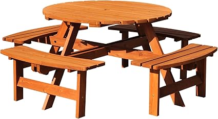 Circular Picnic Table With Back Rests Wooden Garden And Patio