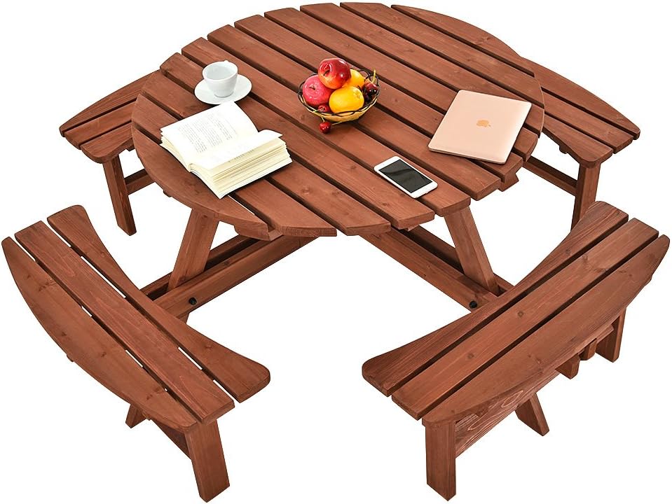 Round Wooden Picnic Bench 8 Seater Outdoor Garden Furniture Pub