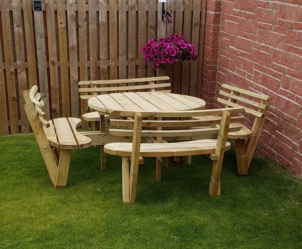 Circular Picnic Table With Back Rests Wooden Garden And Patio