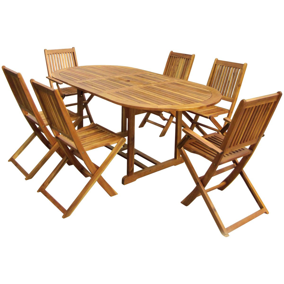 Teak Wooden Garden Oval Extending Dining Table 6 Chairs Set