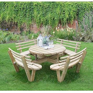 Amazon Com 8 Seater Wooden Round Picnic Table And Bench For
