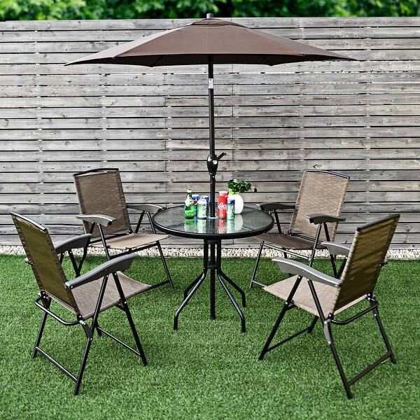 6 Piece Patio Dining Set Folding Table Chairs Umbrella Outdoor