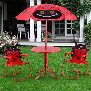 Kids Patio Set Table 2 Folding Chairs W Umbrella Beetle Outdoor