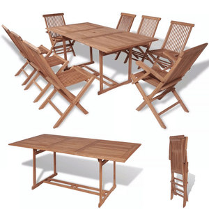 9 Pcs Outdoor Dining Set Garden Table And Folding Armrest Chairs